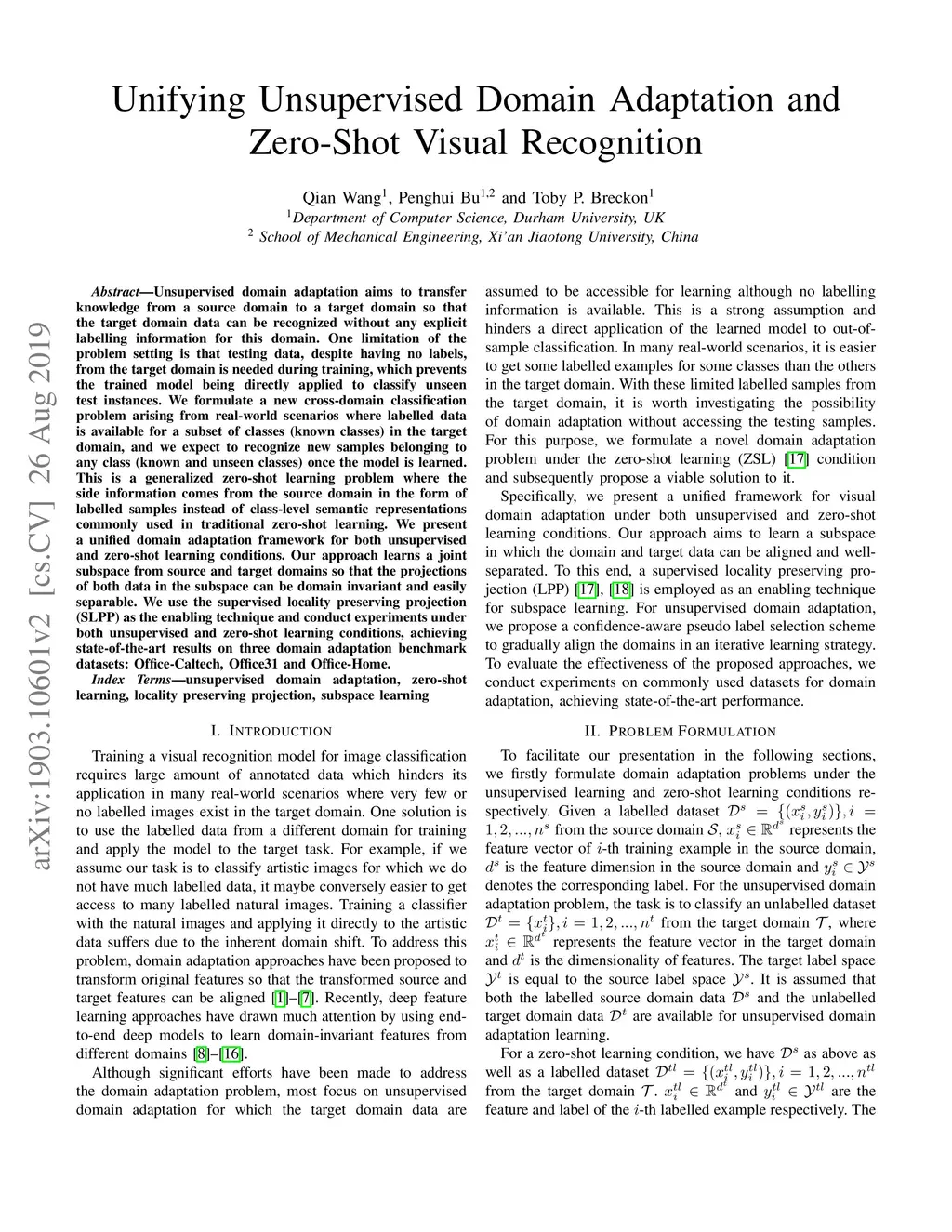 Unifying Unsupervised Domain Adaptation and Zero-Shot Visual Recognition