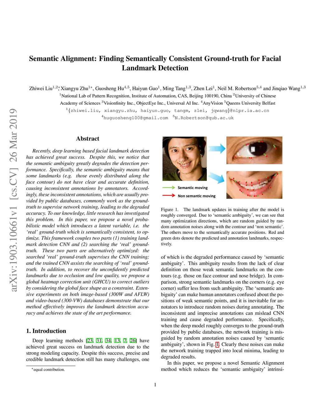 Recently, deep learning based facial landmark detection has achieved great success. Despite this, we notice that the semantic ambiguity greatly degrades the detection performance. Specifically, the semantic ambiguity means that some landmarks (e.g. those evenly distributed along the face contour) do not have clear and accurate definition, causing inconsistent annotations by annotators. Accordingly, these inconsistent annotations, which are usually provided by public databases, commonly work as the ground-truth to supervise network training, leading to the degraded accuracy. To our knowledge, little research has investigated this problem. In this paper, we propose a novel probabilistic model which introduces a latent variable, i.e. the 'real' ground-truth which is semantically consistent, to optimize. This framework couples two parts (1) training landmark detection CNN and (2) searching the 'real' ground-truth. These two parts are alternatively optimized: the searched 'real' ground-truth supervises the CNN training; and the trained CNN assists the searching of 'real' ground-truth. In addition, to recover the unconfidently predicted landmarks due to occlusion and low quality, we propose a global heatmap correction unit (GHCU) to correct outliers by considering the global face shape as a constraint. Extensive experiments on both image-based (300W and AFLW) and video-based (300-VW) databases demonstrate that our method effectively improves the landmark detection accuracy and achieves the state of the art performance.
