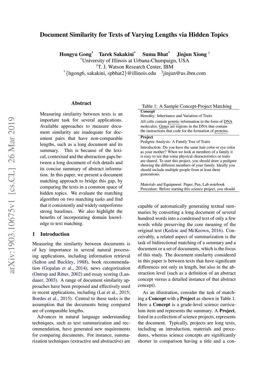 Document Similarity for Texts of Varying Lengths via Hidden Topics