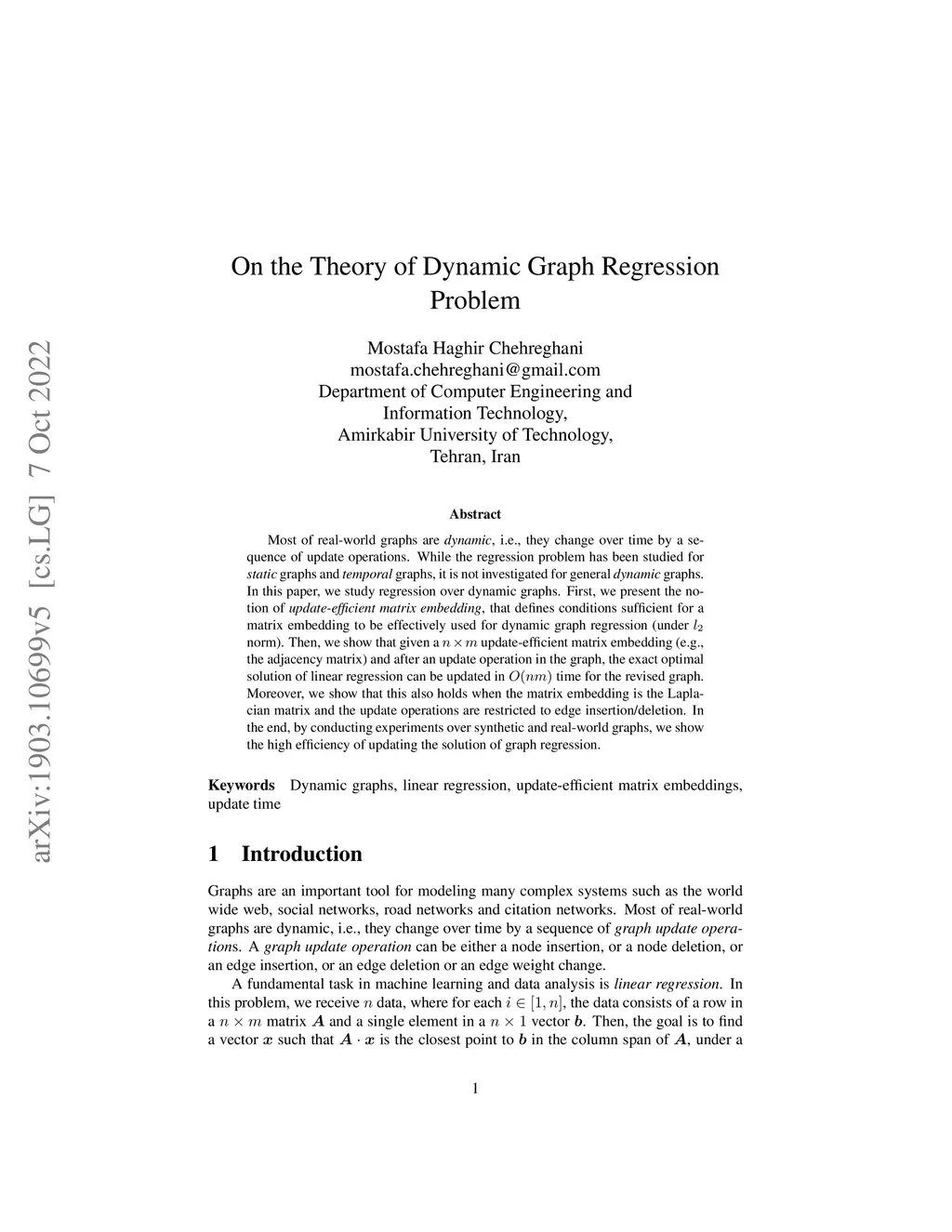 On the Theory of Dynamic Graph Regression Problem