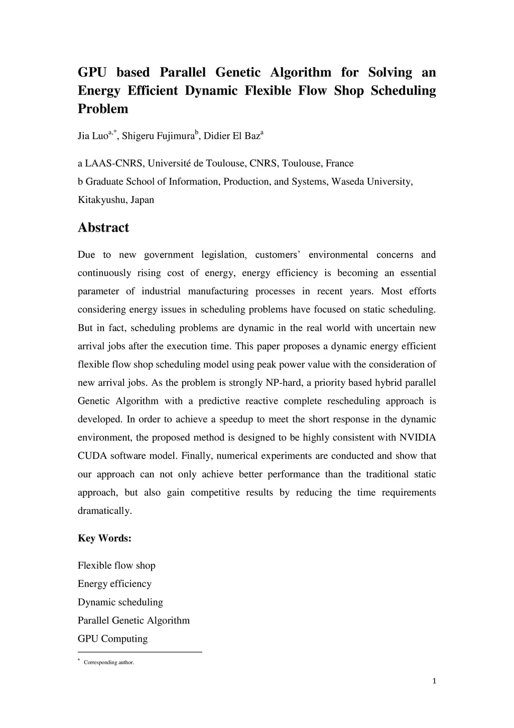GPU based parallel genetic algorithm for solving an energy efficient