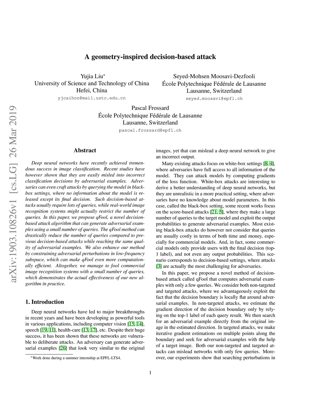 Deep neural networks have recently achieved tremendous success in image classification. Recent studies have however shown that they are easily misled into incorrect classification decisions by adversarial examples. Adversaries can even craft attacks by querying the model in black-box settings, where no information about the model is released except its final decision. Such decision-based attacks usually require lots of queries, while real-world image recognition systems might actually restrict the number of queries. In this paper, we propose qFool, a novel decision-based attack algorithm that can generate adversarial examples using a small number of queries. The qFool method can drastically reduce the number of queries compared to previous decision-based attacks while reaching the same quality of adversarial examples. We also enhance our method by constraining adversarial perturbations in low-frequency subspace, which can make qFool even more computationally efficient. Altogether, we manage to fool commercial image recognition systems with a small number of queries, which demonstrates the actual effectiveness of our new algorithm in practice.
