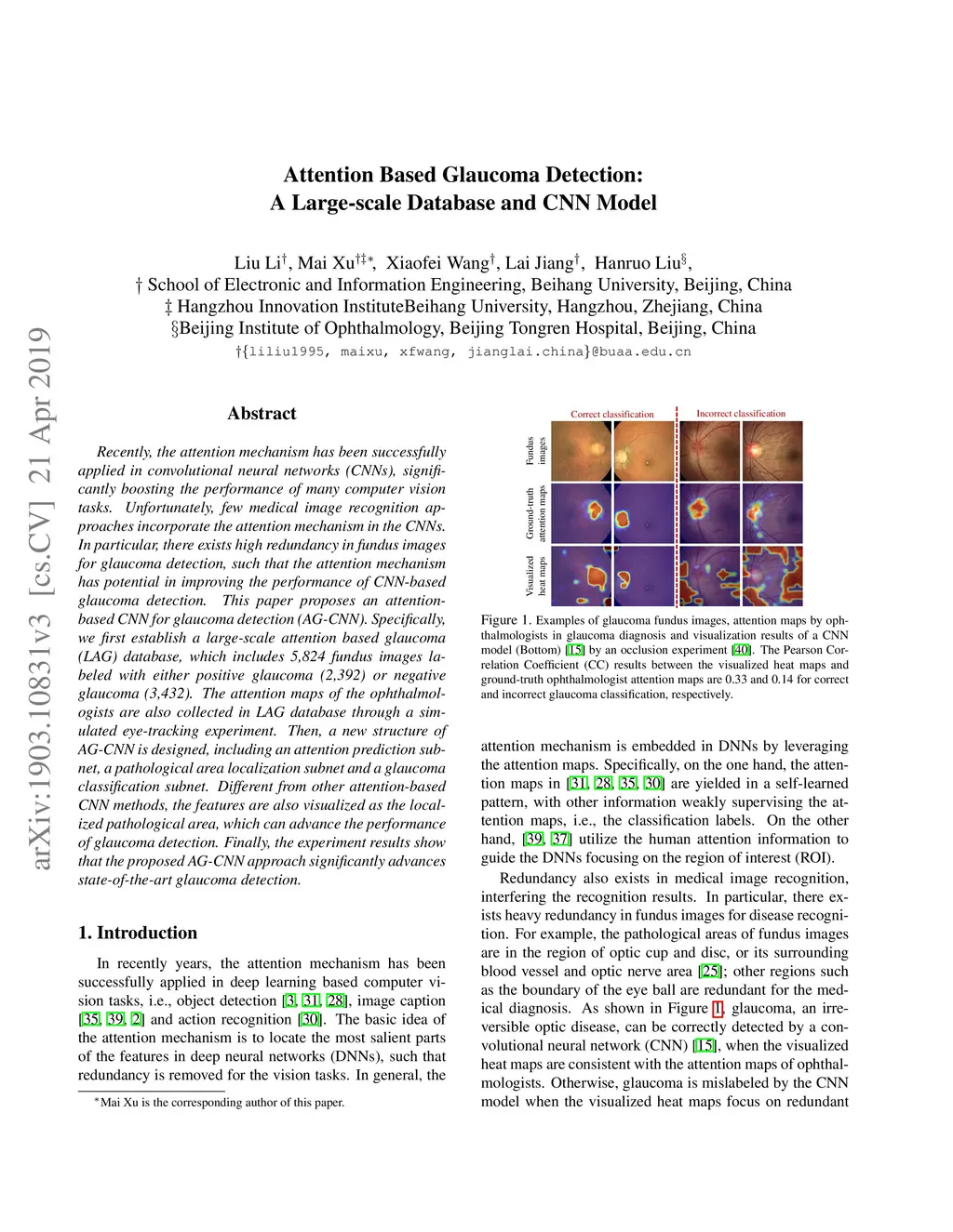 Attention Based Glaucoma Detection: A Large-scale Database and CNN Model