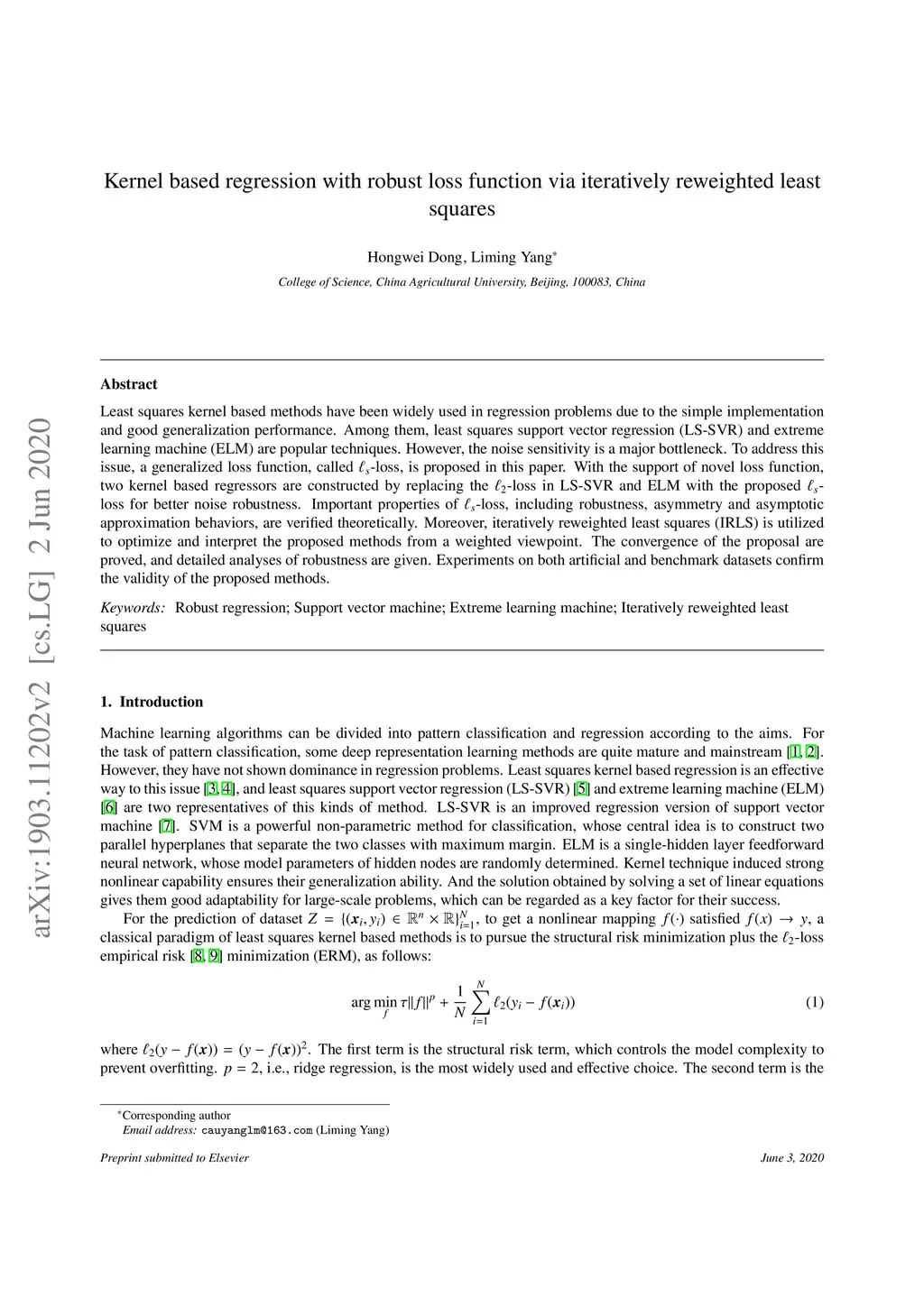 Least squares kernel based methods have been widely used in regression problems due to the simple implementation and good generalization performance. Among them, least squares support vector regression (LS-SVR) and extreme learning machine (ELM) are popular techniques. However, the noise sensitivity is a major bottleneck. To address this issue, a generalized loss function, called -loss, is proposed in this paper. With the support of novel loss function, two kernel based regressors are constructed by replacing the -loss in LS-SVR and ELM with the proposed -loss for better noise robustness. Important properties of -loss, including robustness, asymmetry and asymptotic approximation behaviors, are verified theoretically. Moreover, iteratively reweighted least squares (IRLS) is utilized to optimize and interpret the proposed methods from a weighted viewpoint. The convergence of the proposal are proved, and detailed analyses of robustness are given. Experiments on both artificial and benchmark datasets confirm the validity of the proposed methods.