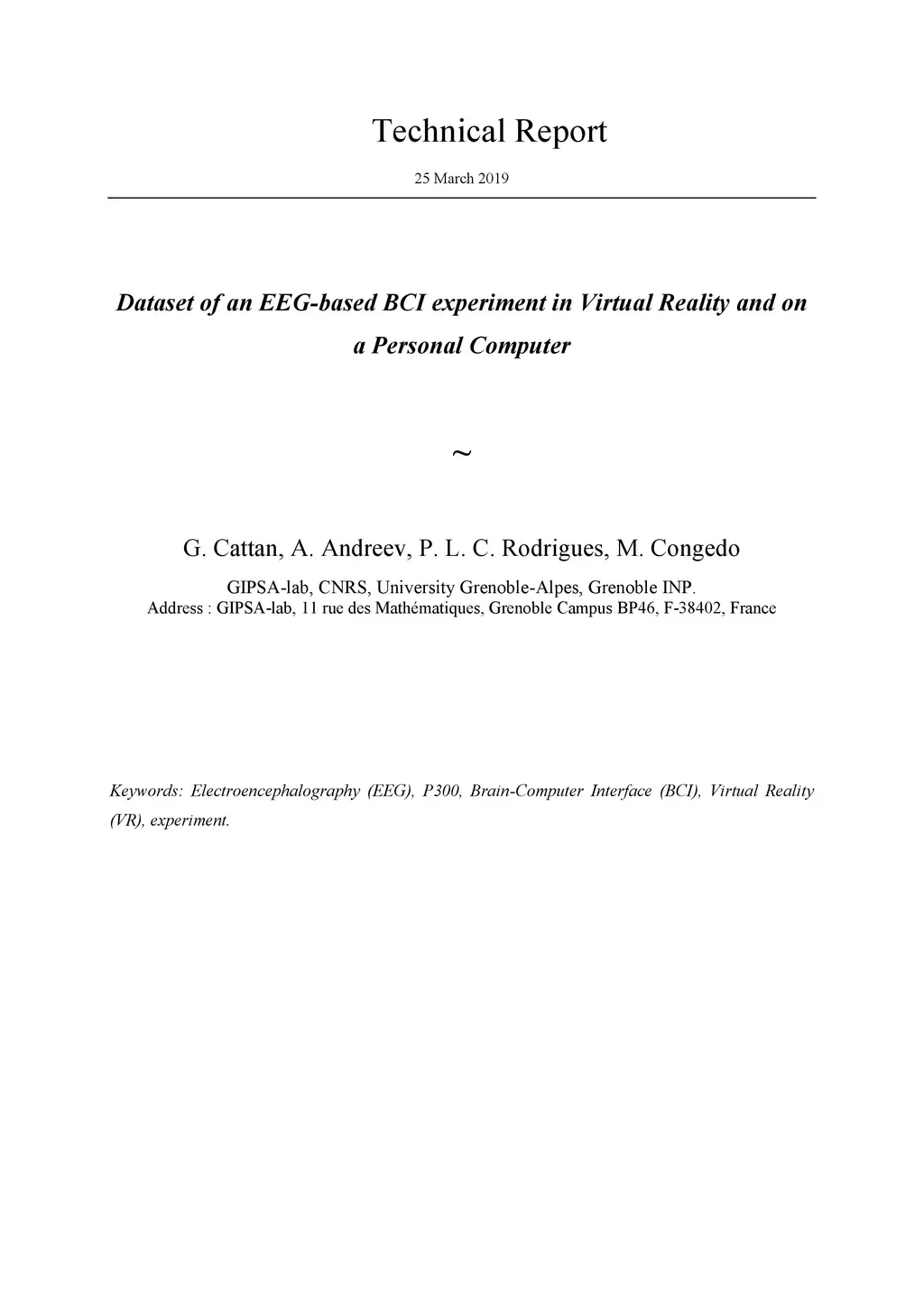 Dataset of an EEG-based BCI experiment in Virtual Reality and on a