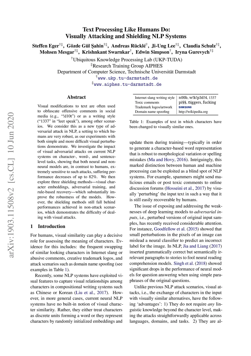 Text Processing Like Humans Do: Visually Attacking and Shielding NLP