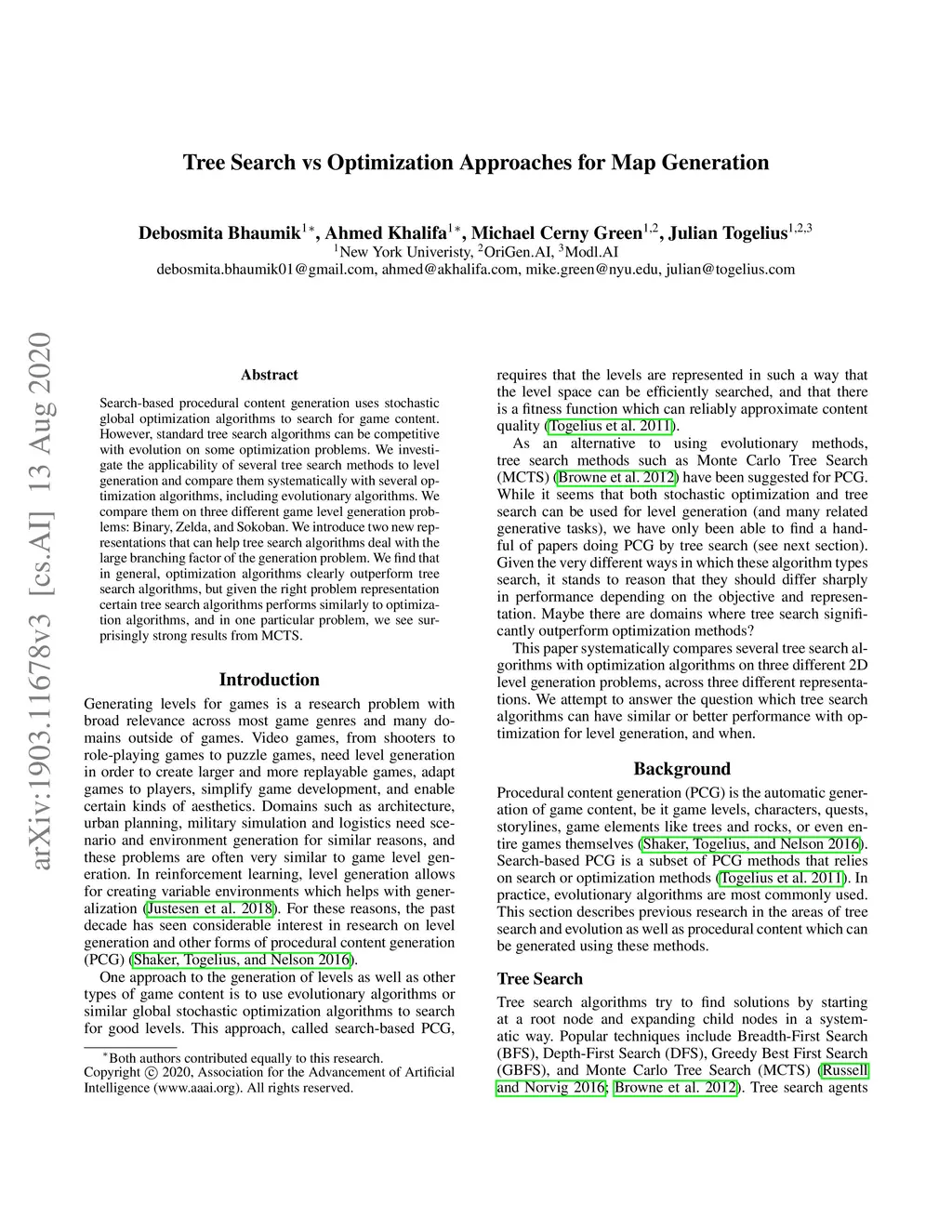 Search-based procedural content generation uses stochastic global optimization algorithms to search for game content. However, standard tree search algorithms can be competitive with evolution on some optimization problems. We investigate the applicability of several tree search methods to level generation and compare them systematically with several optimization algorithms, including evolutionary algorithms. We compare them on three different game level generation problems: Binary, Zelda, and Sokoban. We introduce two new representations that can help tree search algorithms deal with the large branching factor of the generation problem. We find that in general, optimization algorithms clearly outperform tree search algorithms, but given the right problem representation certain tree search algorithms perform similarly to optimization algorithms, and in one particular problem, we see surprisingly strong results from MCTS.