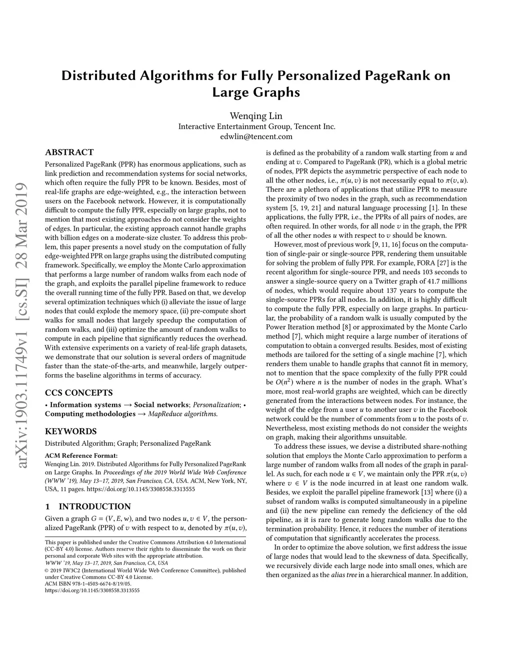 Distributed Algorithms for Fully Personalized PageRank on Large Graphs