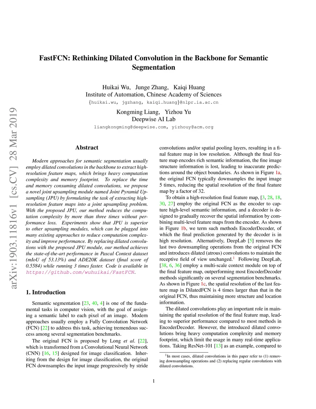 FastFCN: Rethinking Dilated Convolution in the Backbone for Semantic