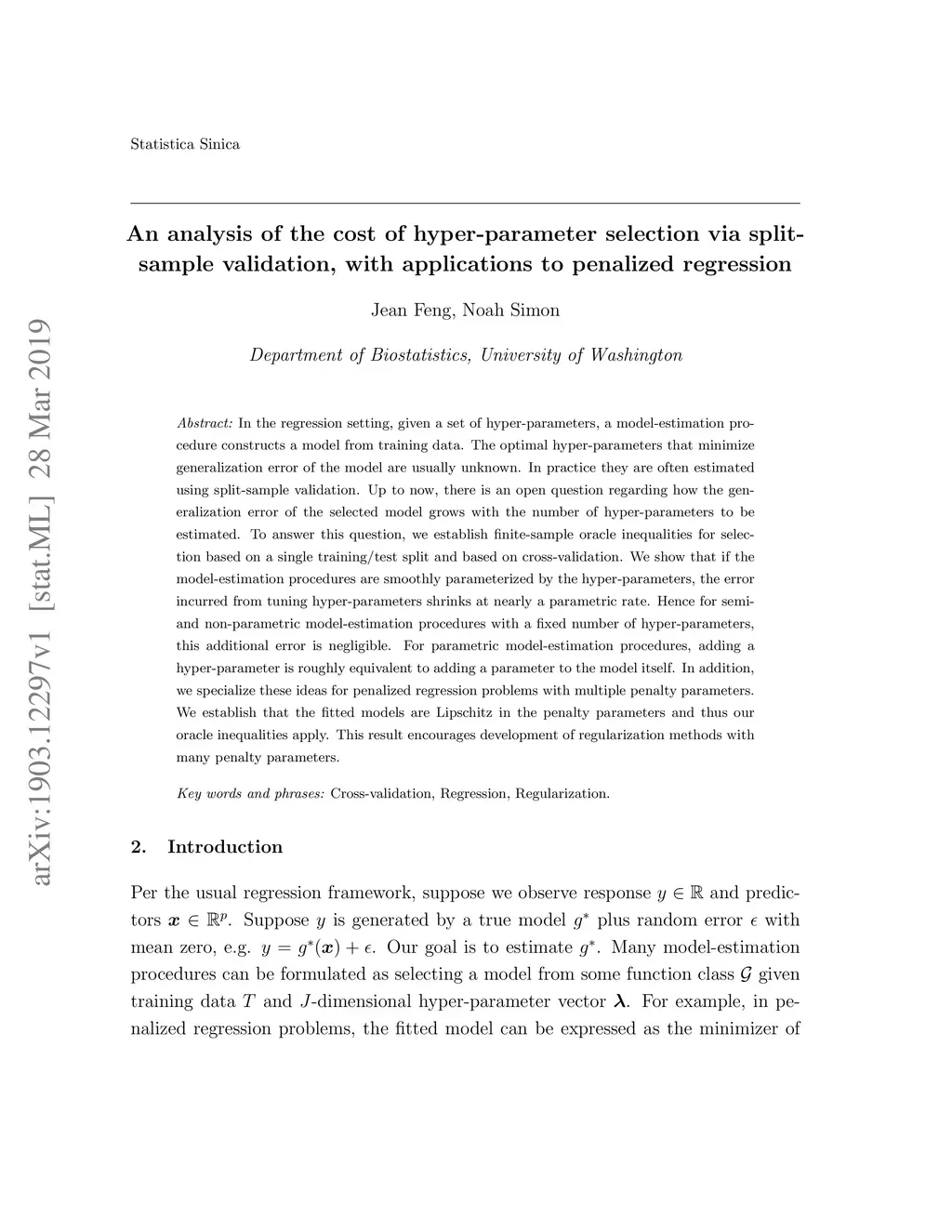 validation, with applications to penalized regression