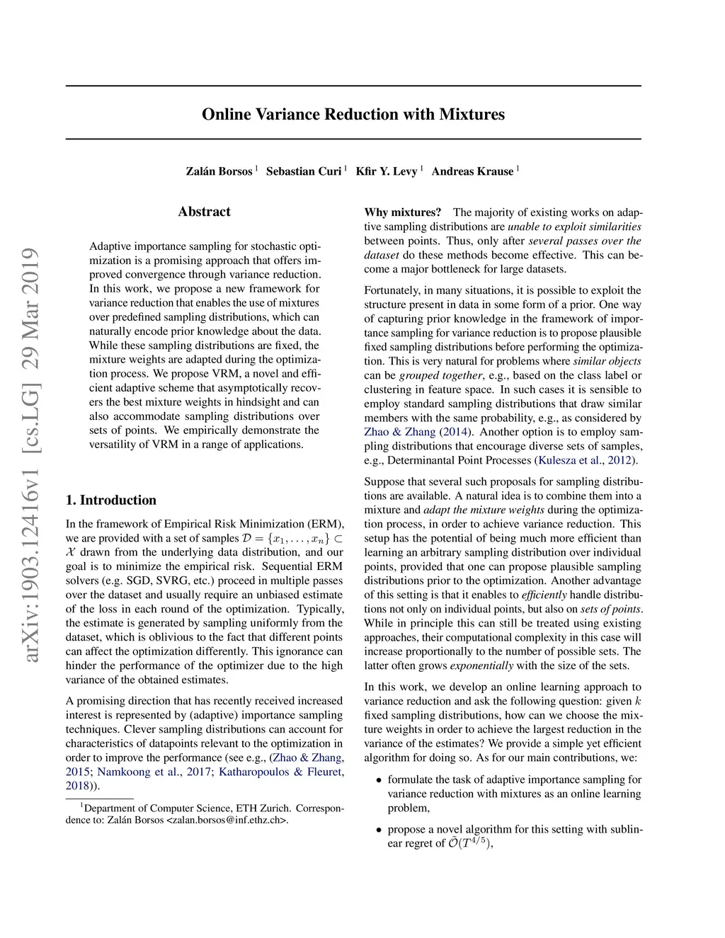 Adaptive importance sampling for stochastic optimization is a promising approach that offers improved convergence through variance reduction. In this work, we propose a new framework for variance reduction that enables the use of mixtures over predefined sampling distributions, which can naturally encode prior knowledge about the data. While these sampling distributions are fixed, the mixture weights are adapted during the optimization process. We propose VRM, a novel and efficient adaptive scheme that asymptotically recovers the best mixture weights in hindsight and can also accommodate sampling distributions over sets of points. We empirically demonstrate the versatility of VRM in a range of applications.