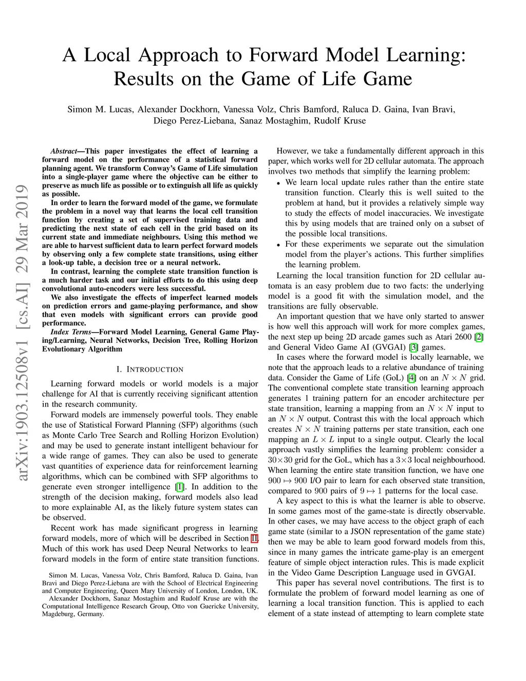 A Local Approach to Forward Model Learning: Results on the Game of Life