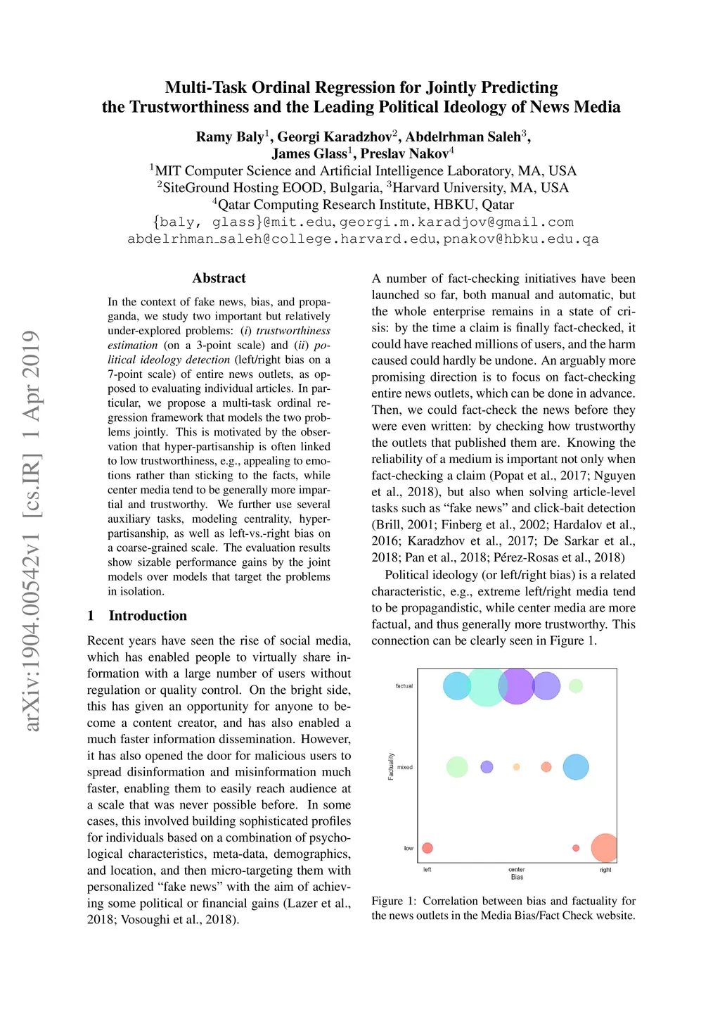 In the context of fake news, bias, and propaganda, we study two important but relatively under-explored problems: (i) trustworthiness estimation (on a 3-point scale) and (ii) political ideology detection (left/right bias on a 7-point scale) of entire news outlets, as opposed to evaluating individual articles. In particular, we propose a multi-task ordinal regression framework that models the two problems jointly. This is motivated by the observation that hyper-partisanship is often linked to low trustworthiness, e.g., appealing to emotions rather than sticking to the facts, while center media tend to be generally more impartial and trustworthy. We further use several auxiliary tasks, modeling centrality, hyperpartisanship, as well as left-vs.-right bias on a coarse-grained scale. The evaluation results show sizable performance gains by the joint models over models that target the problems in isolation.