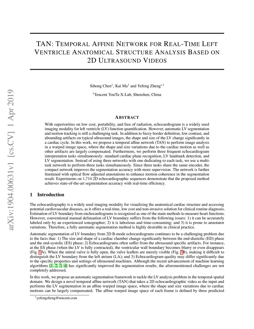 TAN: Temporal Affine Network for Real-Time Left Ventricle Anatomical