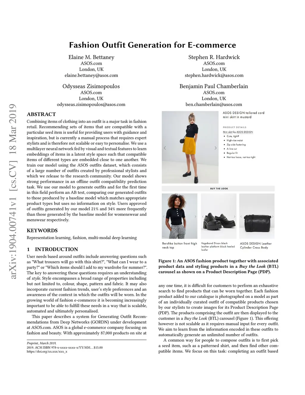 Combining items of clothing into an outfit is a major task in fashion retail. Recommending sets of items that are compatible with a particular seed item is useful for providing users with guidance and inspiration, but is currently a manual process that requires expert stylists and is therefore not scalable or easy to personalise. We use a multilayer neural network fed by visual and textual features to learn embeddings of items in a latent style space such that compatible items of different types are embedded close to one another. We train our model using the ASOS outfits dataset, which consists of a large number of outfits created by professional stylists and which we release to the research community. Our model shows strong performance in an offline outfit compatibility prediction task. We use our model to generate outfits and for the first time in this field perform an AB test, comparing our generated outfits to those produced by a baseline model which matches appropriate product types but uses no information on style. Users approved of outfits generated by our model 21% and 34% more frequently than those generated by the baseline model for womenswear and menswear respectively.