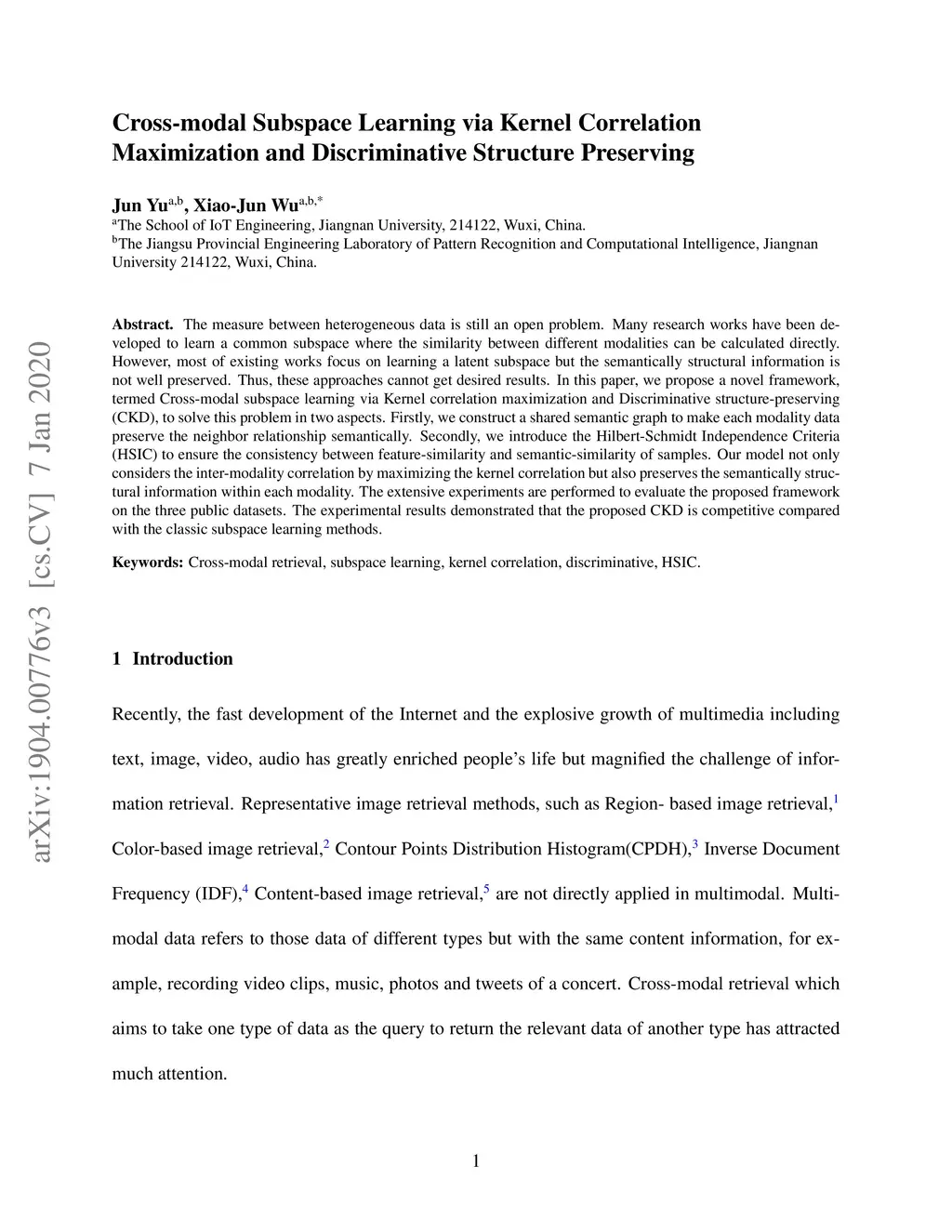 Cross-modal Subspace Learning via Kernel Correlation Maximization and