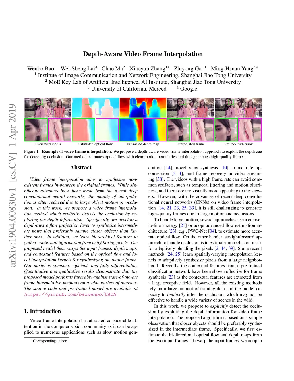 Depth-Aware Video Frame Interpolation