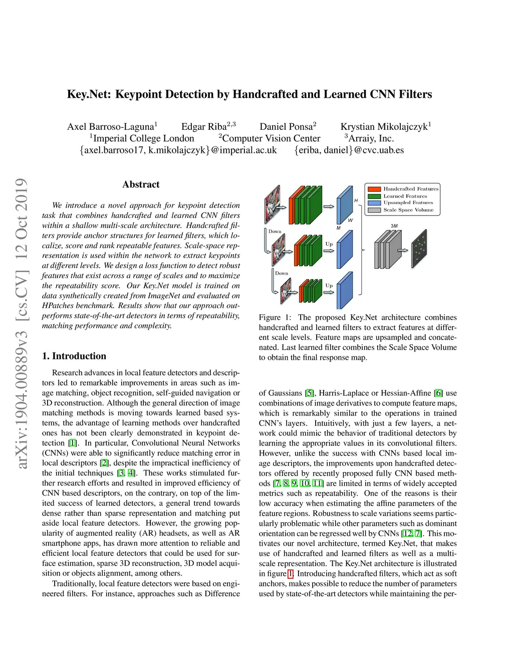 Key.Net: Keypoint Detection by Handcrafted and Learned CNN Filters