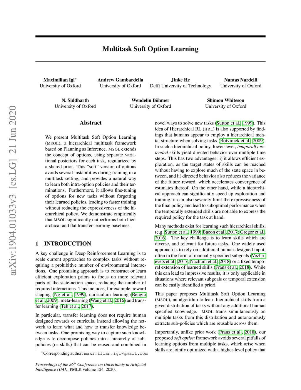 Multitask Soft Option Learning