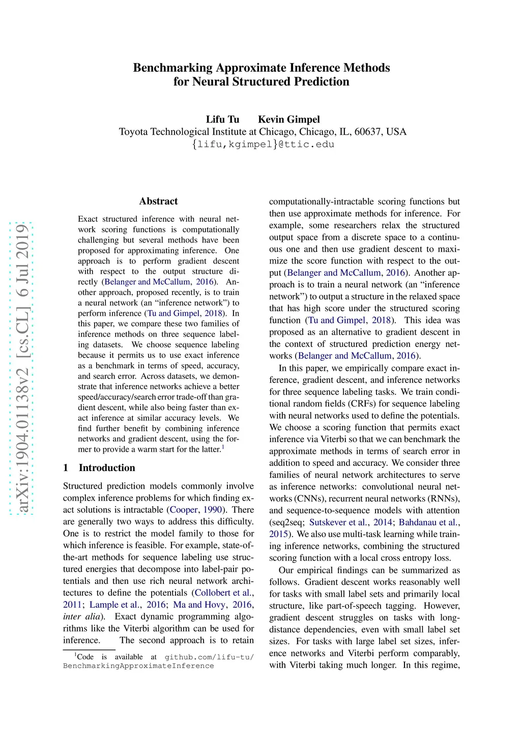 Benchmarking Approximate Inference Methods for Neural Structured