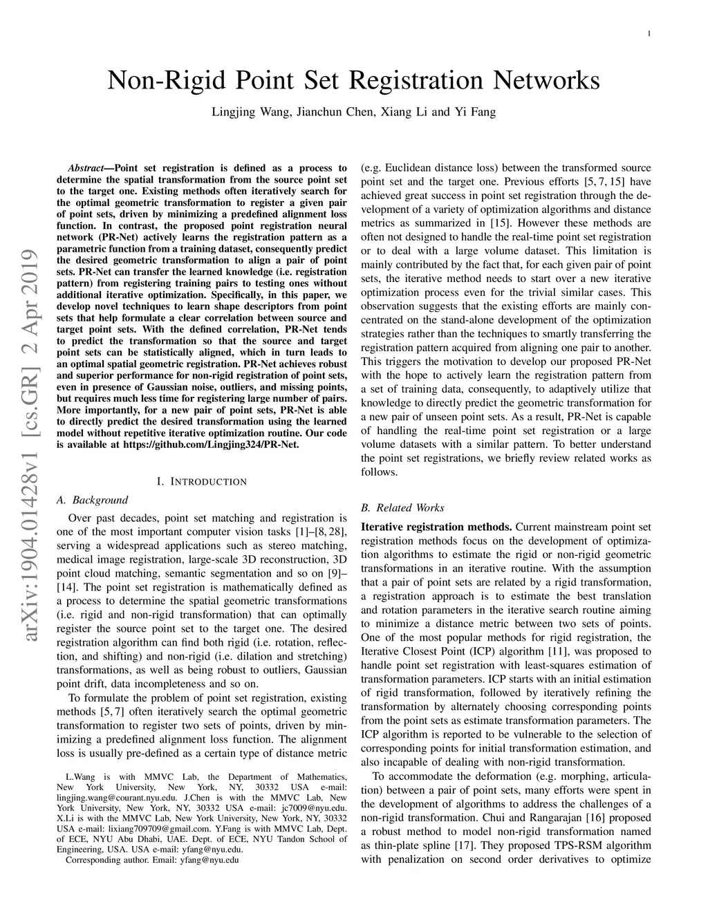 Point set registration is defined as a process to determine the spatial transformation from the source point set to the target one. Existing methods often iteratively search for the optimal geometric transformation to register a given pair of point sets, driven by minimizing a predefined alignment loss function. In contrast, the proposed point registration neural network (PR-Net) actively learns the registration pattern as a parametric function from a training dataset, consequently predict the desired geometric transformation to align a pair of point sets. PR-Net can transfer the learned knowledge (i.e. registration pattern) from registering training pairs to testing ones without additional iterative optimization. Specifically, in this paper, we develop novel techniques to learn shape descriptors from point sets that help formulate a clear correlation between source and target point sets. With the defined correlation, PR-Net tends to predict the transformation so that the source and target point sets can be statistically aligned, which in turn leads to an optimal spatial geometric registration. PR-Net achieves robust and superior performance for non-rigid registration of point sets, even in presence of Gaussian noise, outliers, and missing points, but requires much less time for registering large number of pairs. More importantly, for a new pair of point sets, PR-Net is able to directly predict the desired transformation using the learned model without repetitive iterative optimization routine. Our code is available at https://github.com/Lingjing324/PR-Net.
