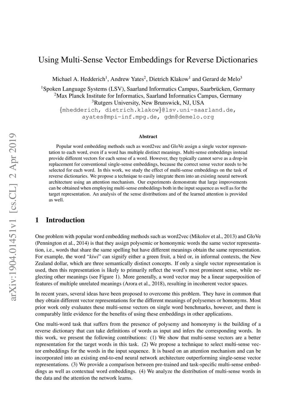 Using Multi-Sense Vector Embeddings for Reverse Dictionaries