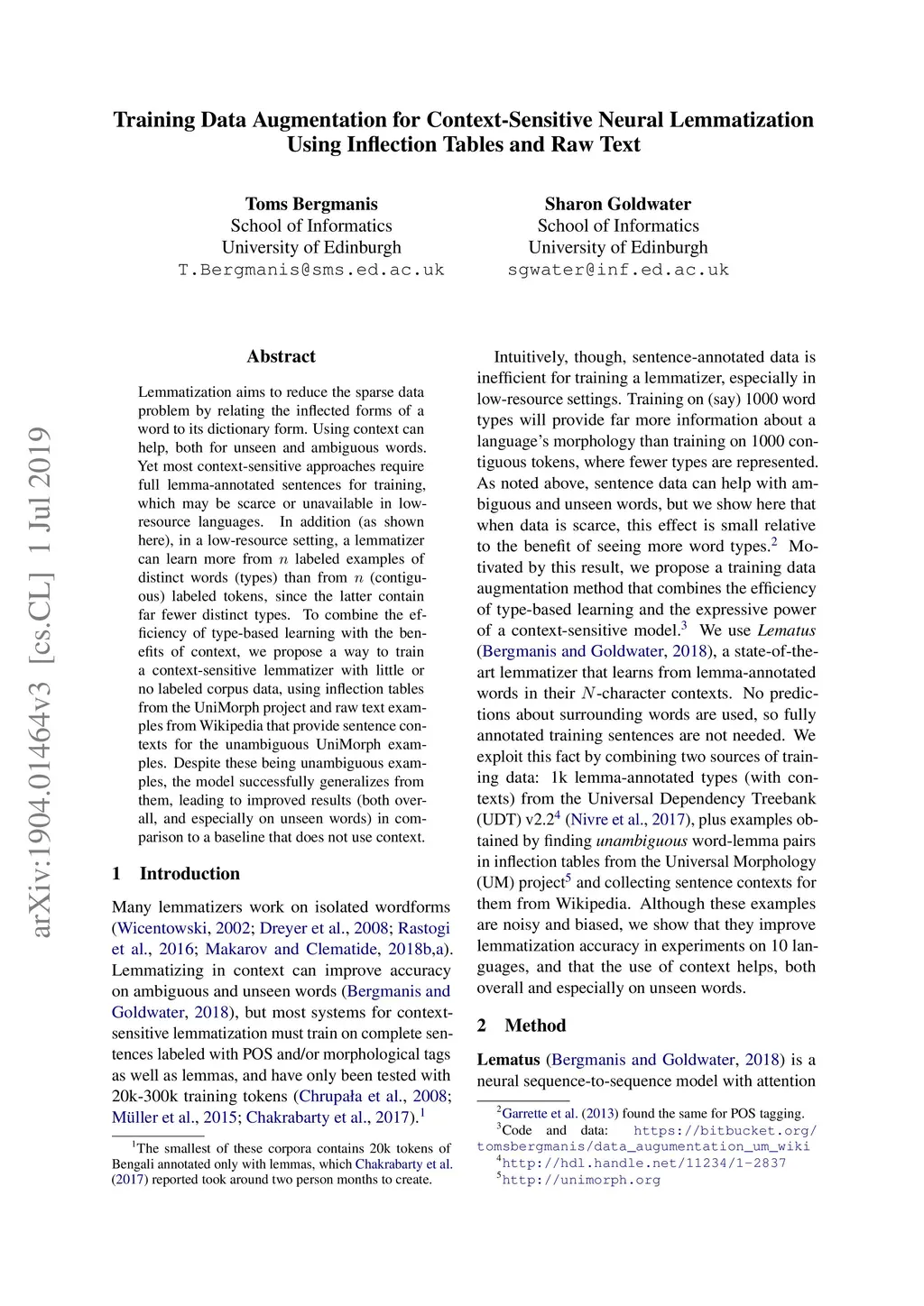 Training Data Augmentation for Context-Sensitive Neural Lemmatization
