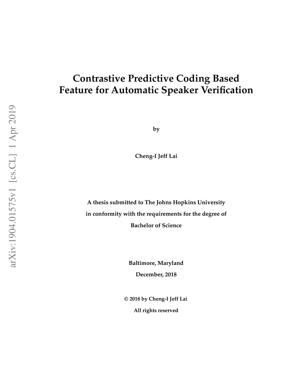 This thesis describes our ongoing work on Contrastive Predictive Coding (CPC) features for speaker verification. CPC is a recently proposed representation learning framework based on predictive coding and noise contrastive estimation. We focus on incorporating CPC features into the standard automatic speaker verification systems, and we present our methods, experiments, and analysis. This thesis also details necessary background knowledge in past and recent work on automatic speaker verification systems, conventional speech features, and the motivation and techniques behind CPC.