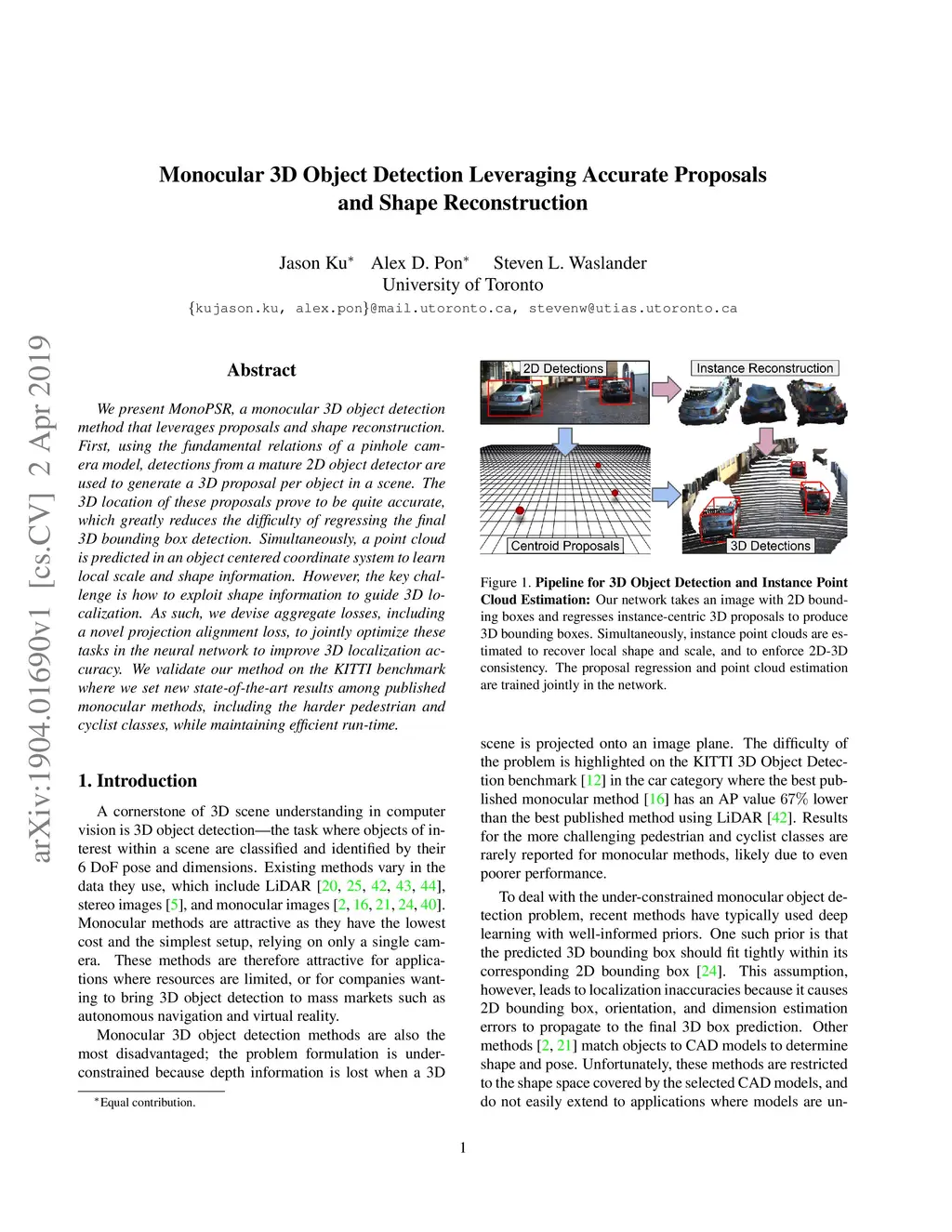 Monocular 3D Object Detection Leveraging Accurate Proposals and Shape
