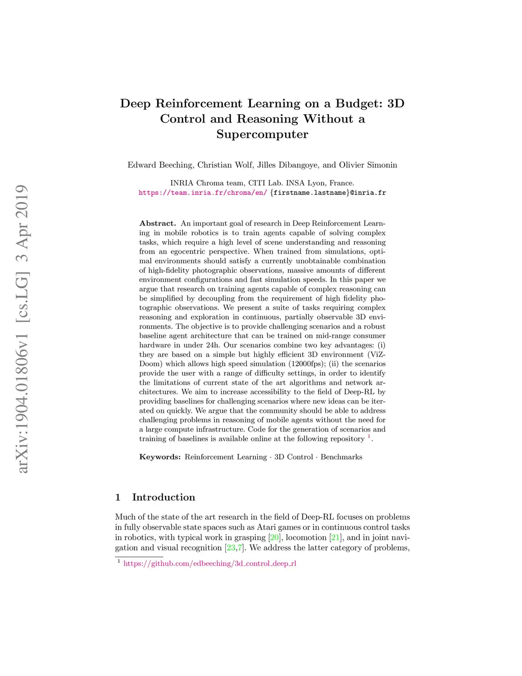 Deep Reinforcement Learning on a Budget: 3D Control and Reasoning