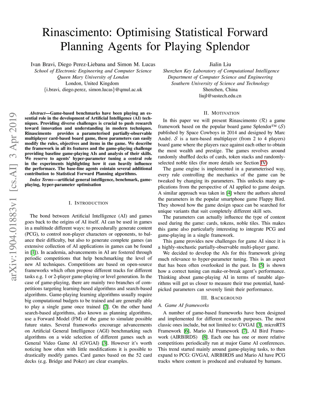 Rinascimento: Optimising Statistical Forward Planning Agents for Playing