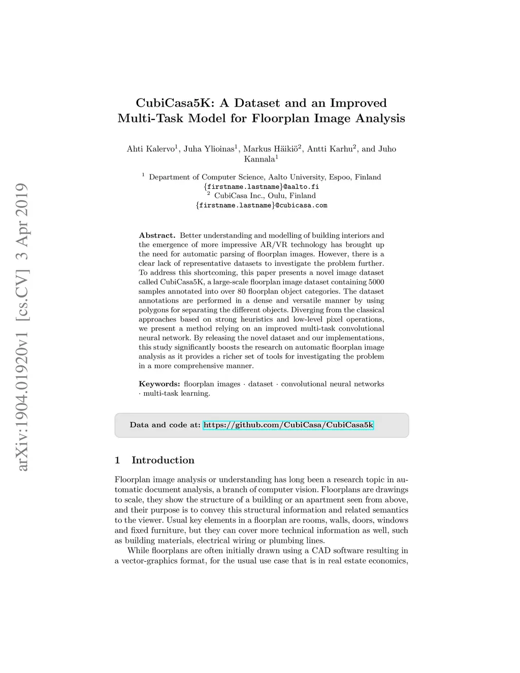 CubiCasa5K: A Dataset and an Improved Multi-Task Model for Floorplan