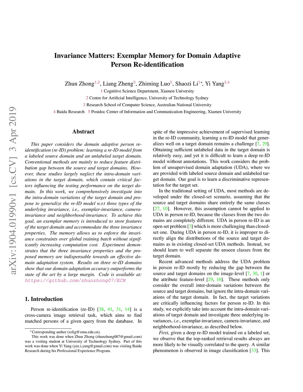 Invariance Matters: Exemplar Memory for Domain Adaptive Person