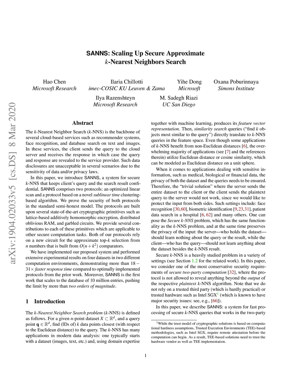SANNS: Scaling Up Secure Approximate k-Nearest Neighbors Search