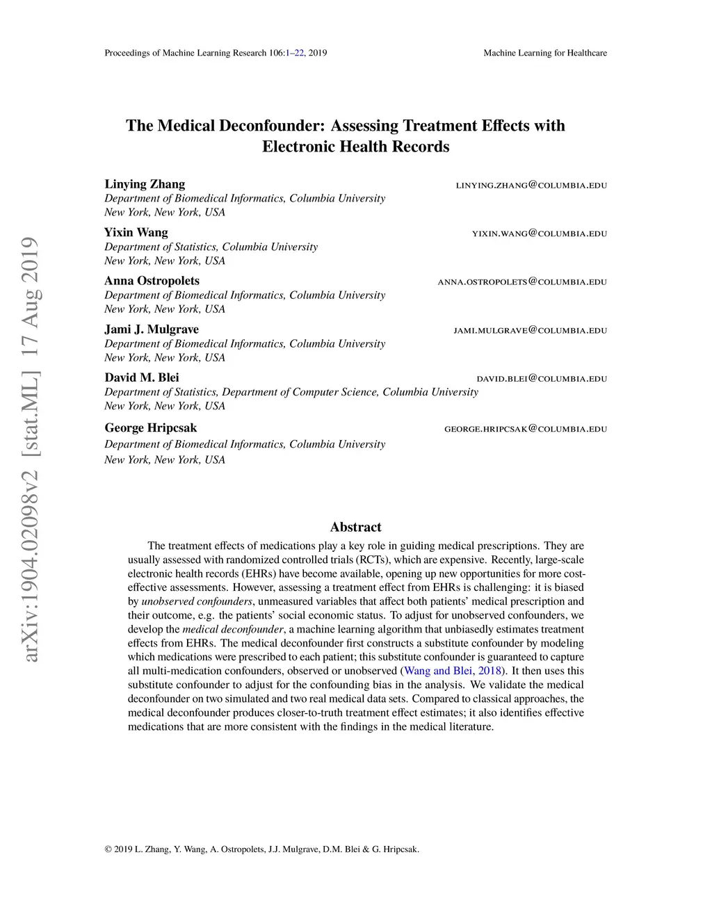 The Medical Deconfounder: Assessing Treatment Effects with Electronic