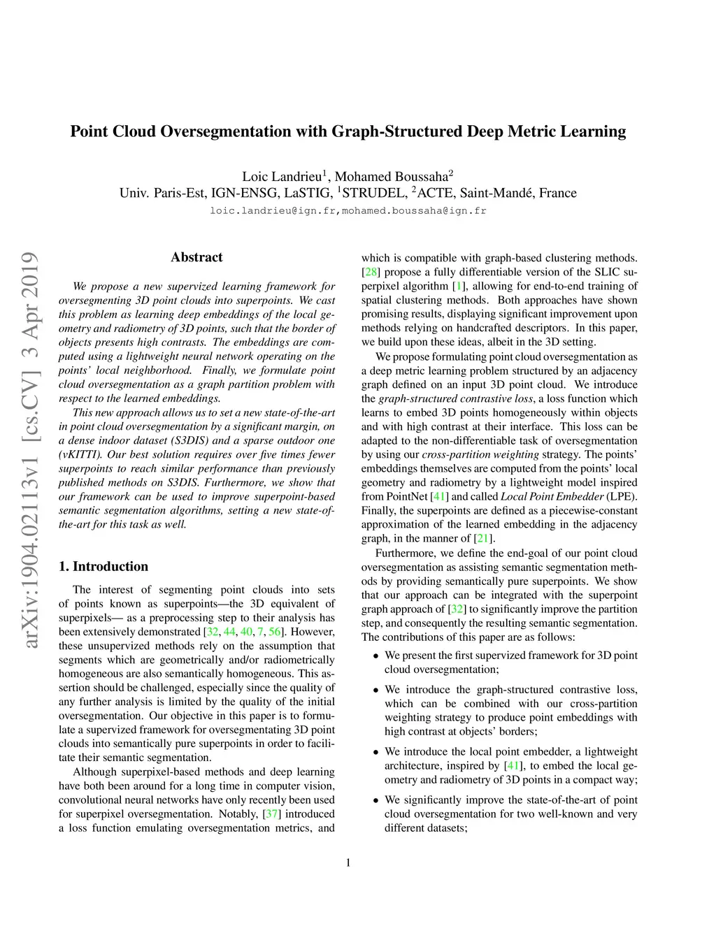 We propose a new supervized learning framework for oversegmenting 3D point clouds into superpoints. We cast this problem as learning deep embeddings of the local geometry and radiometry of 3D points, such that the border of objects presents high contrasts. The embeddings are computed using a lightweight neural network operating on the points' local neighborhood. Finally, we formulate point cloud oversegmentation as a graph partition problem with respect to the learned embeddings. This new approach allows us to set a new state-of-the-art in point cloud oversegmentation by a significant margin, on a dense indoor dataset (S3DIS) and a sparse outdoor one (vKITTI). Our best solution requires over five times fewer superpoints to reach similar performance than previously published methods on S3DIS. Furthermore, we show that our framework can be used to improve superpoint-based semantic segmentation algorithms, setting a new state-of-the-art for this task as well.