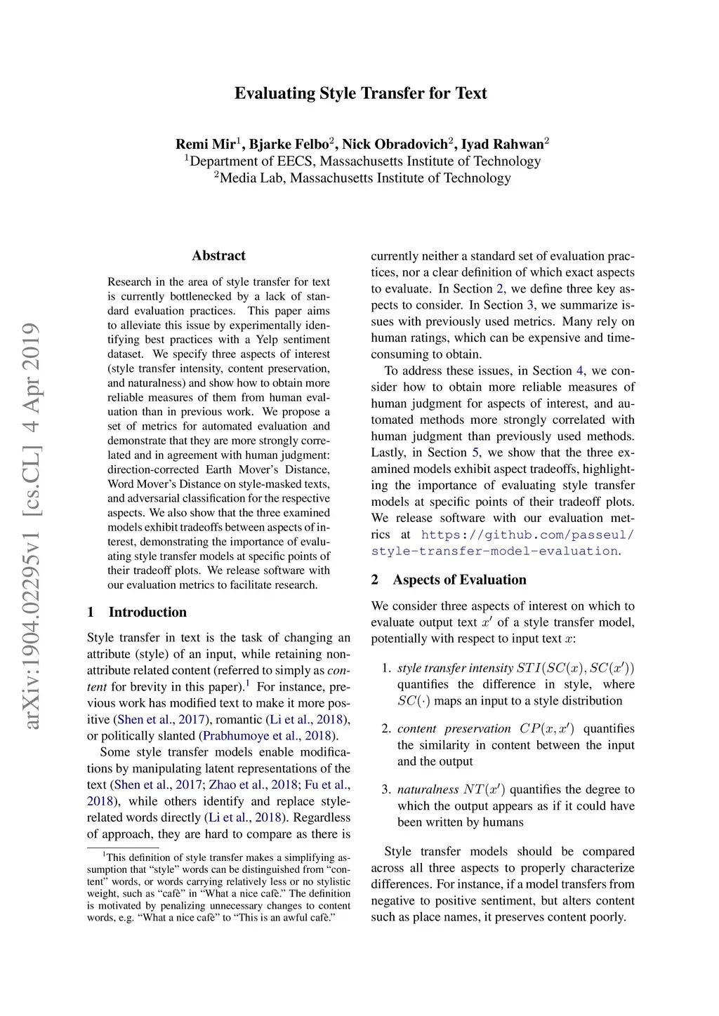Evaluating Style Transfer for Text