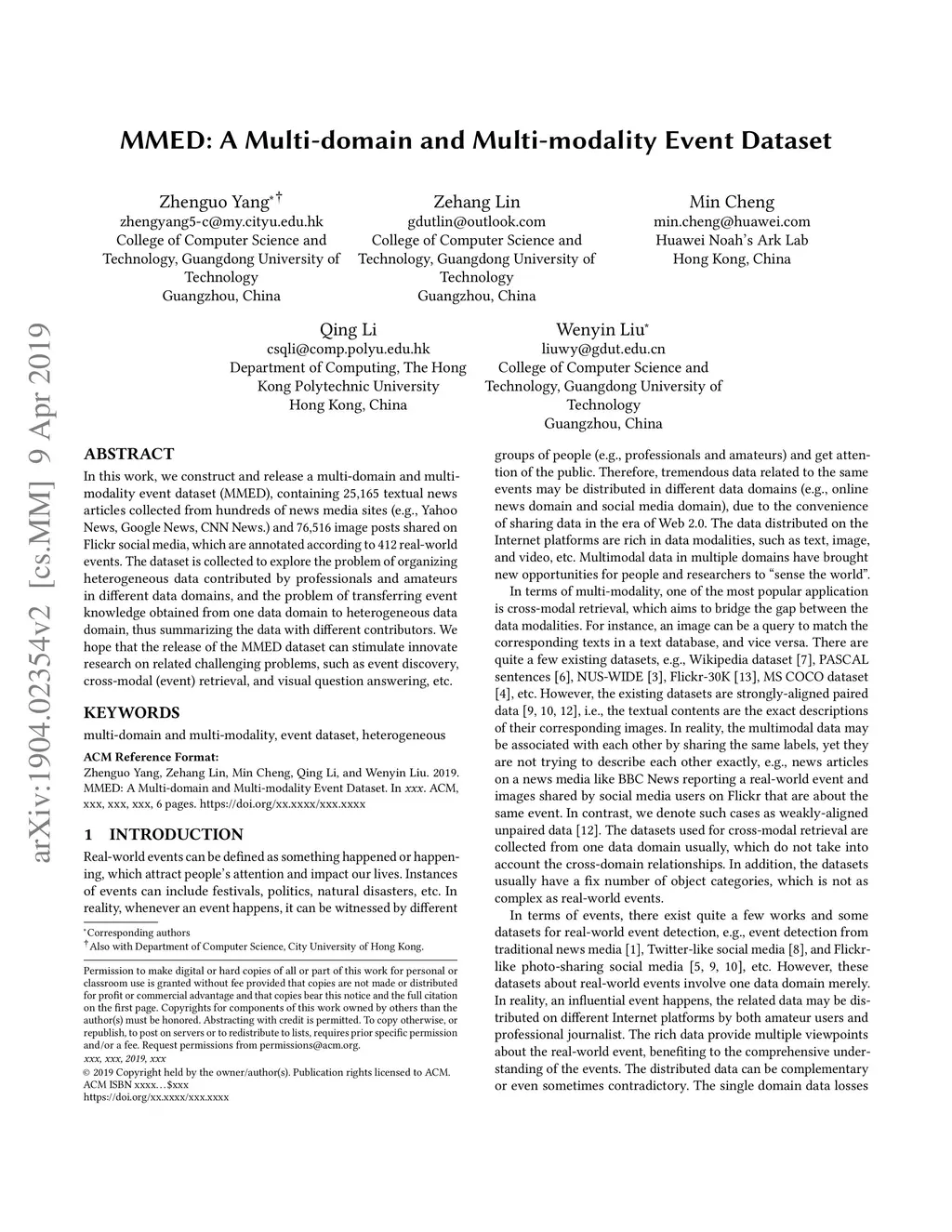 MMED: A Multi-domain and Multi-modality Event Dataset