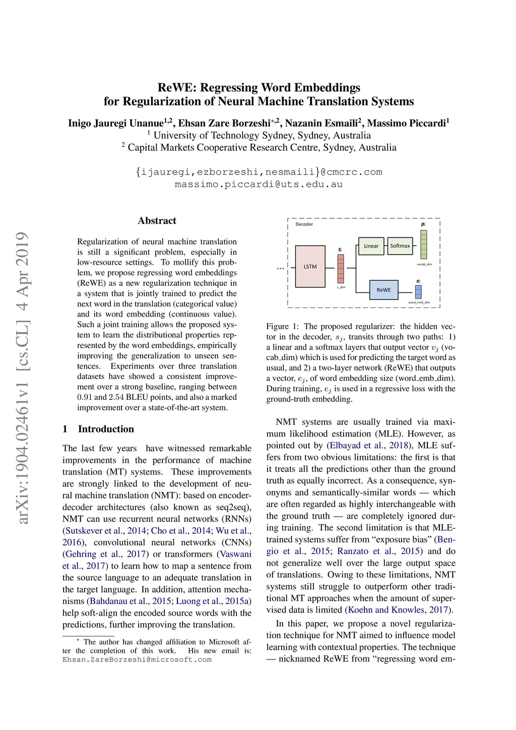 ReWE: Regressing Word Embeddings for Regularization of Neural Machine