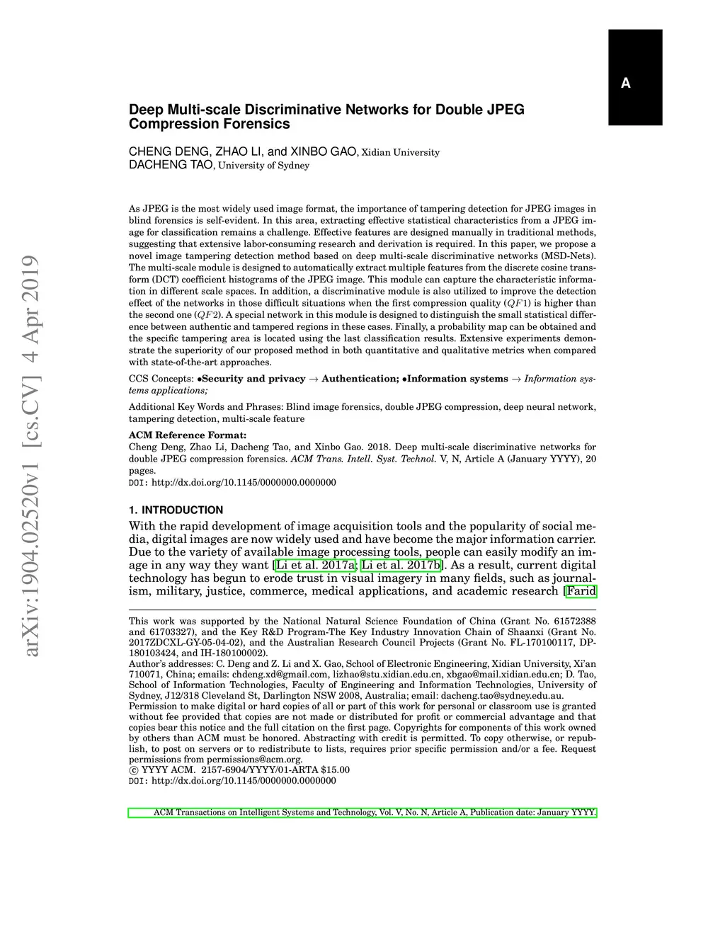 Deep Multi-scale Discriminative Networks for Double JPEG Compression