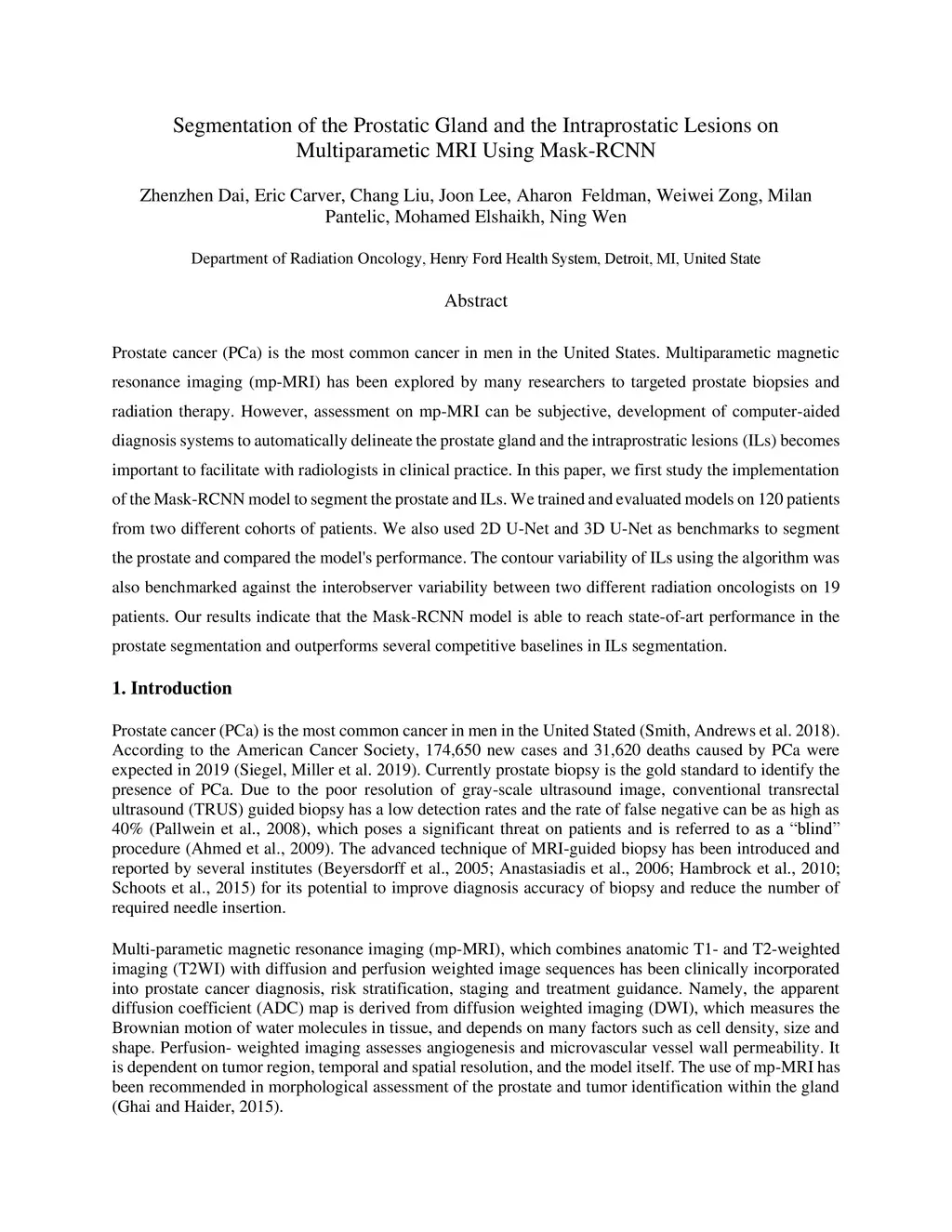 Multiparametic MRI Using Mask-RCNN