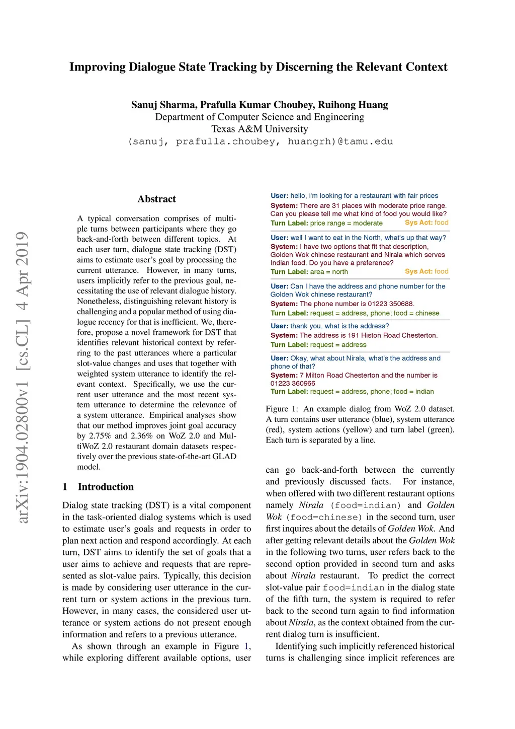 Improving Dialogue State Tracking by Discerning the Relevant Context