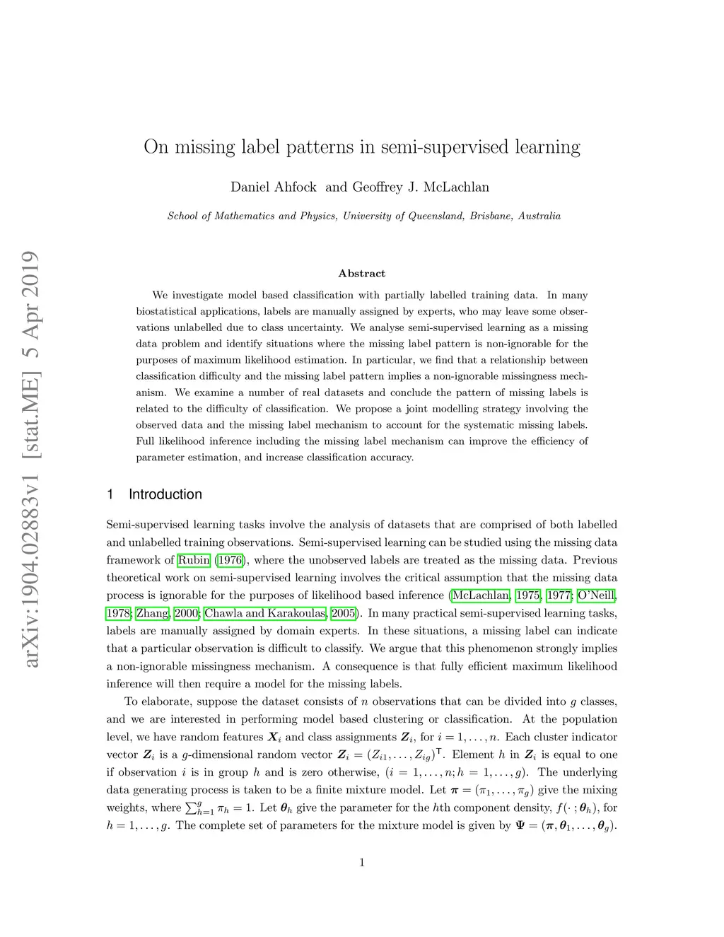 We investigate model based classification with partially labelled training data. In many biostatistical applications, labels are manually assigned by experts, who may leave some observations unlabelled due to class uncertainty. We analyse semi-supervised learning as a missing data problem and identify situations where the missing label pattern is non-ignorable for the purposes of maximum likelihood estimation. In particular, we find that a relationship between classification difficulty and the missing label pattern implies a non-ignorable missingness mechanism. We examine a number of real datasets and conclude the pattern of missing labels is related to the difficulty of classification. We propose a joint modelling strategy involving the observed data and the missing label mechanism to account for the systematic missing labels. Full likelihood inference including the missing label mechanism can improve the efficiency of parameter estimation, and increase classification accuracy.