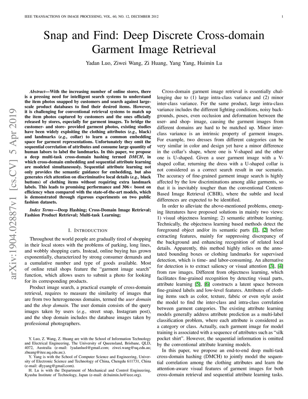 Snap and Find: Deep Discrete Cross-domain Garment Image Retrieval