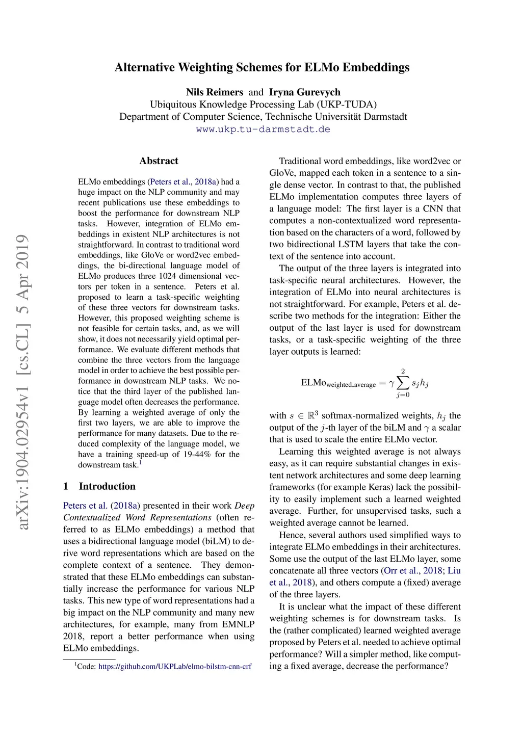 Alternative Weighting Schemes for ELMo Embeddings