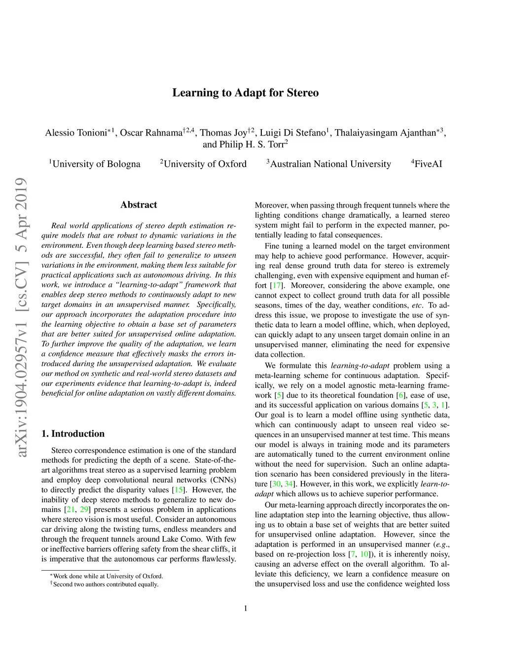 Real world applications of stereo depth estimation require models that are robust to dynamic variations in the environment. Even though deep learning based stereo methods are successful, they often fail to generalize to unseen variations in the environment, making them less suitable for practical applications such as autonomous driving. In this work, we introduce a "learning-to-adapt" framework that enables deep stereo methods to continuously adapt to new target domains in an unsupervised manner. Specifically, our approach incorporates the adaptation procedure into the learning objective to obtain a base set of parameters that are better suited for unsupervised online adaptation. To further improve the quality of the adaptation, we learn a confidence measure that effectively masks the errors introduced during the unsupervised adaptation. We evaluate our method on synthetic and real-world stereo datasets and our experiments evidence that learning-to-adapt is, indeed beneficial for online adaptation on vastly different domains.