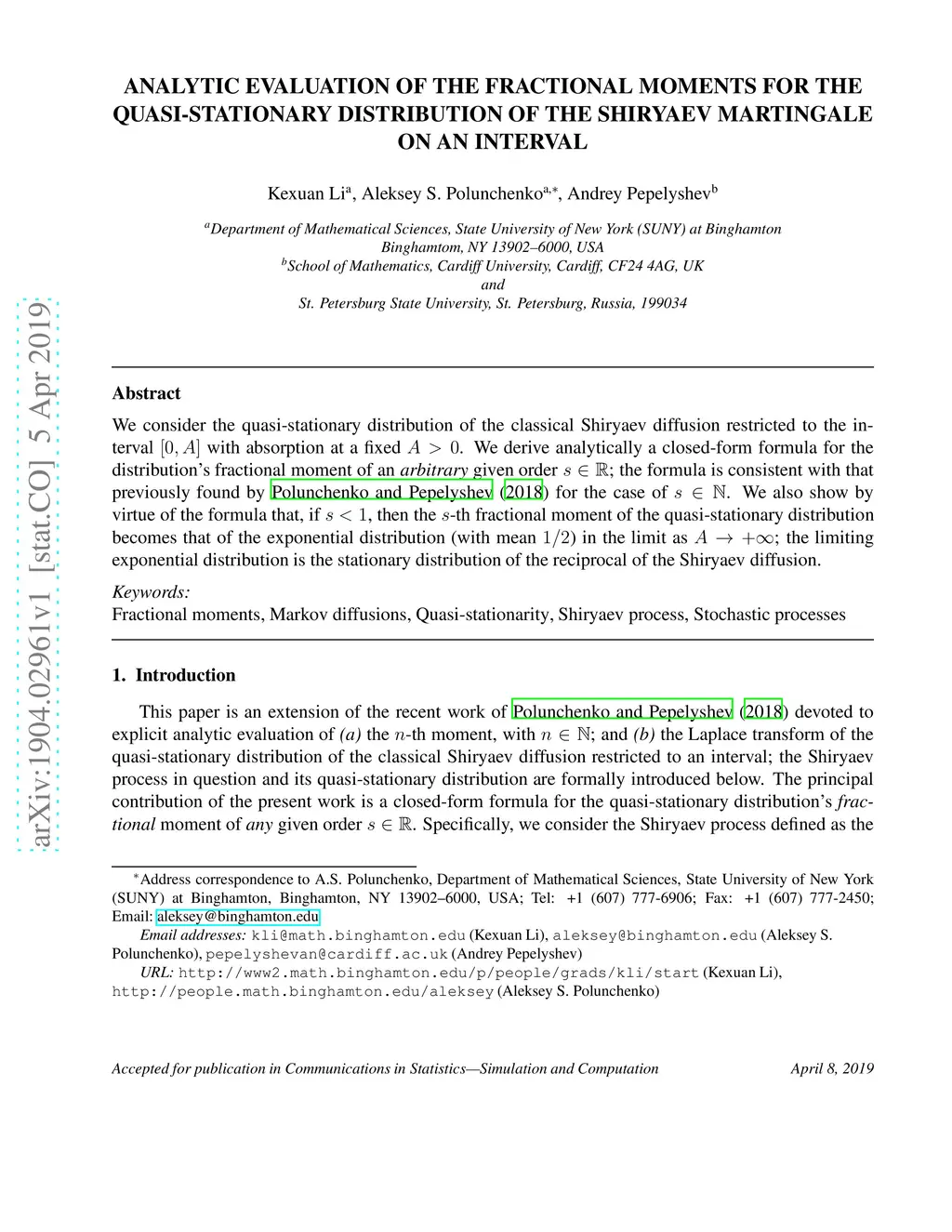 Analytic Evaluation of the Fractional Moments for the Quasi-Stationary