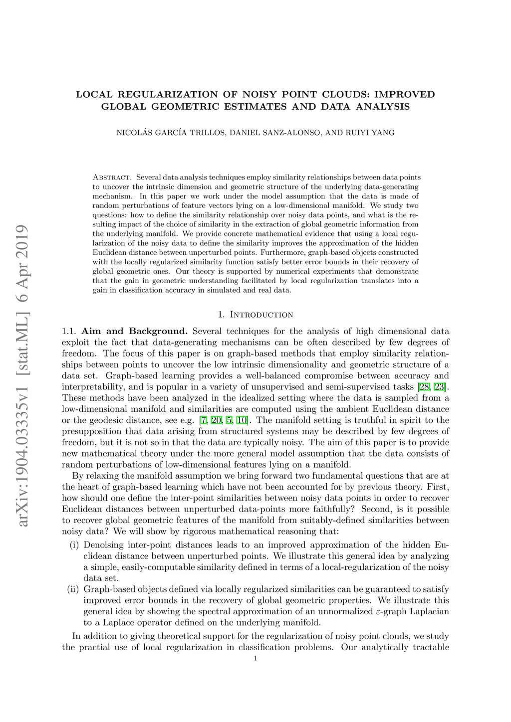 Local Regularization of Noisy Point Clouds: Improved Global Geometric