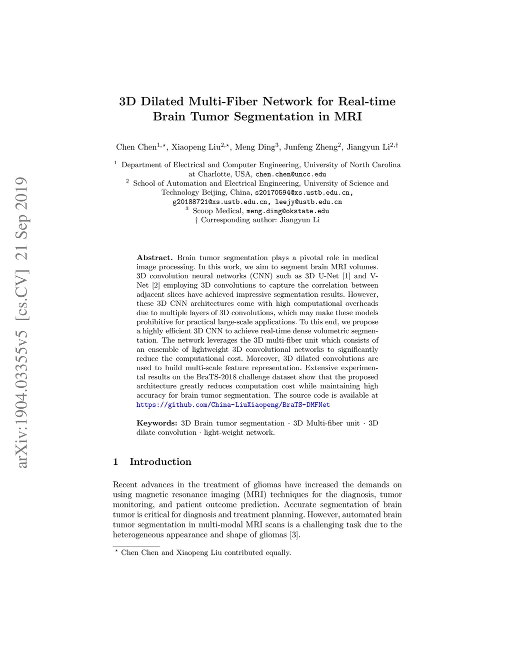 3D Dilated Multi-Fiber Network for Real-time Brain Tumor Segmentation in