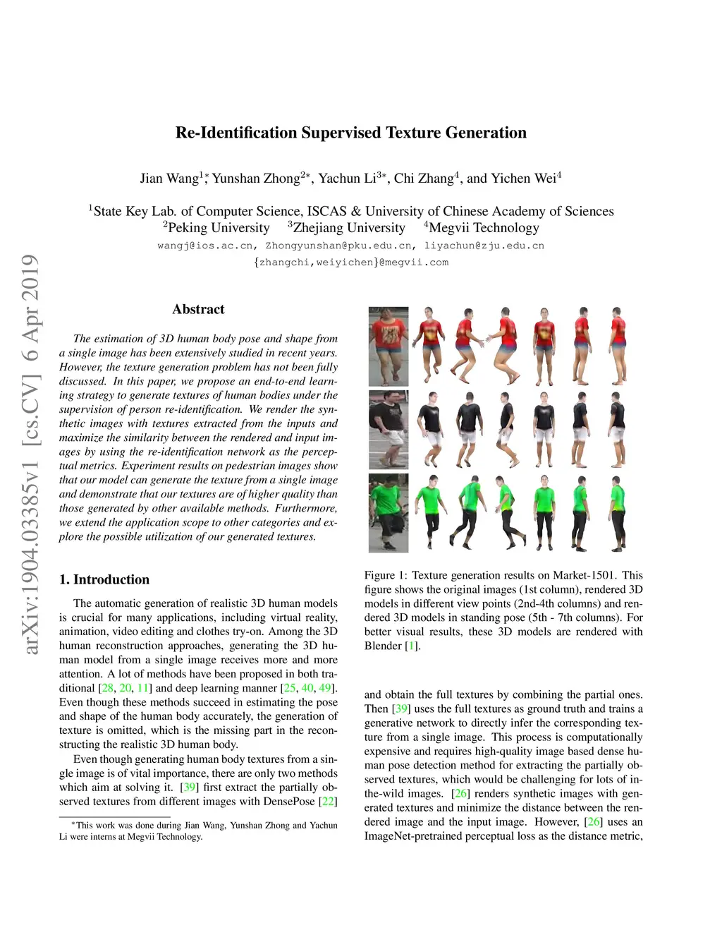 The estimation of 3D human body pose and shape from a single image has been extensively studied in recent years. However, the texture generation problem has not been fully discussed. In this paper, we propose an end-to-end learning strategy to generate textures of human bodies under the supervision of person re-identification. We render the synthetic images with textures extracted from the inputs and maximize the similarity between the rendered and input images by using the re-identification network as the perceptual metrics. Experiment results on pedestrian images show that our model can generate the texture from a single image and demonstrate that our textures are of higher quality than those generated by other available methods. Furthermore, we extend the application scope to other categories and explore the possible utilization of our generated textures.